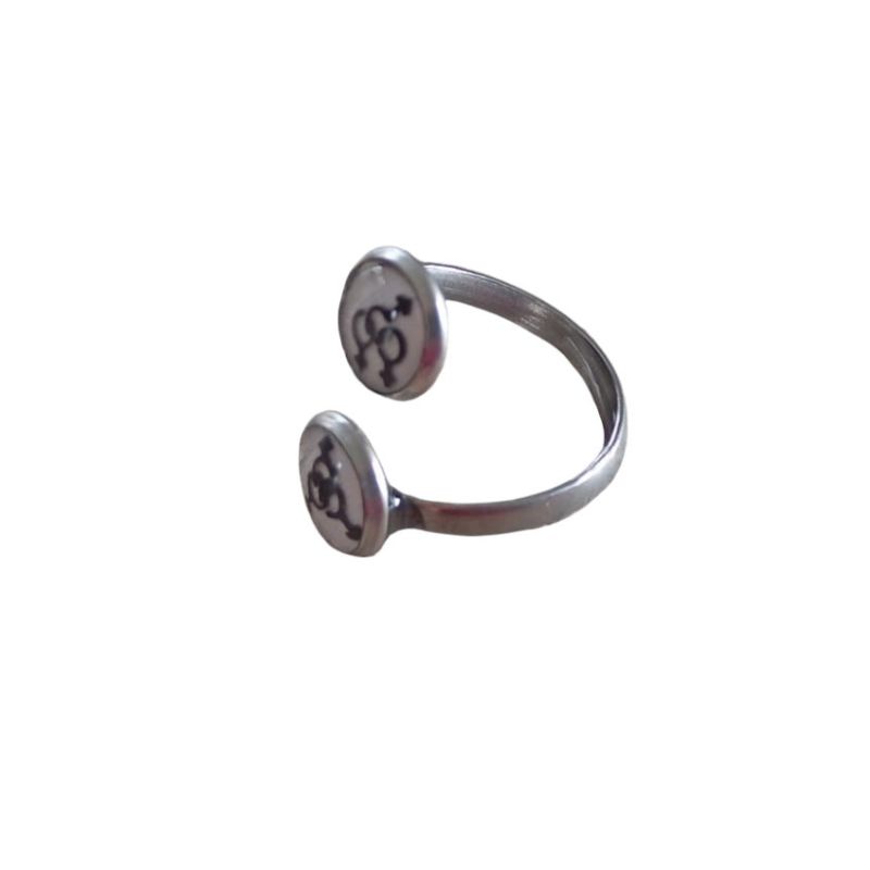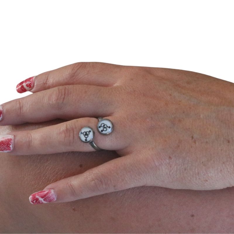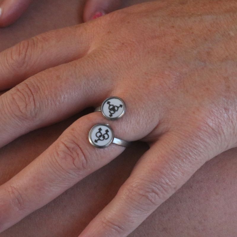 Bague Triolisme symbole libertin – Réversible (2 hommes/1 femme & 2 femmes/1 homme) – Acier inoxydable – Taille ajustable