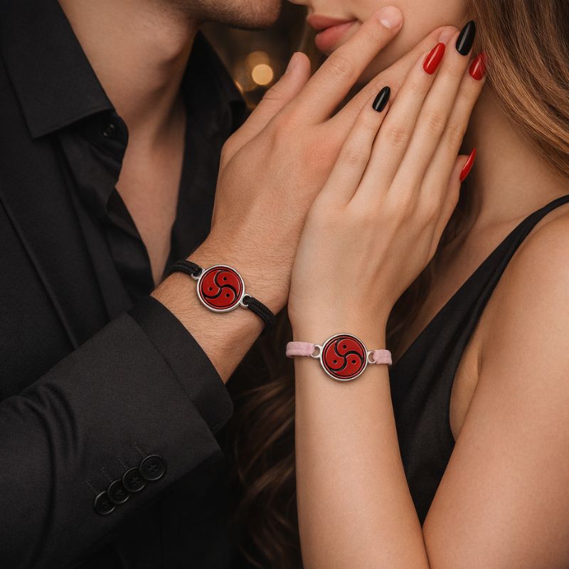 Affichez votre connexion unique et assumée avec élégance grâce à ce bracelet couple symbole BDSM, parfait pour les partenaires désirant exprimer leur lien intime avec style et subtilité.