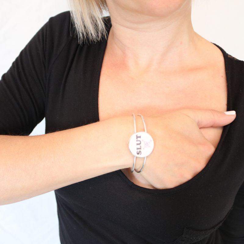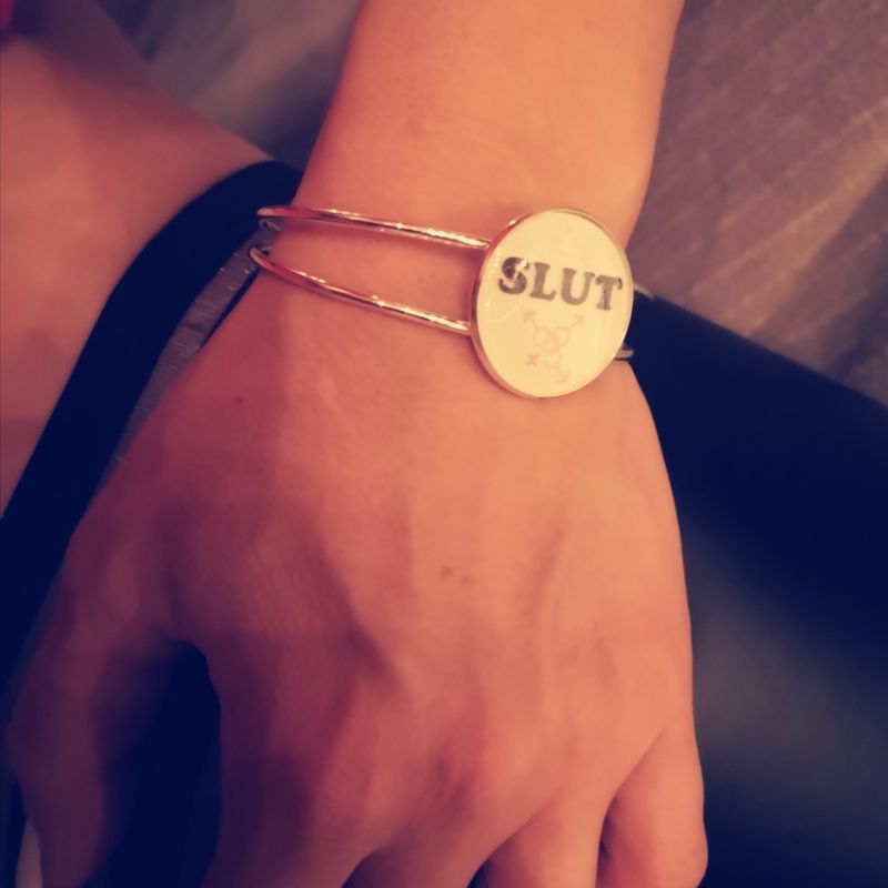 Design : inscription “SLUT” subtile et élégante – entre provocation et fierté 💫