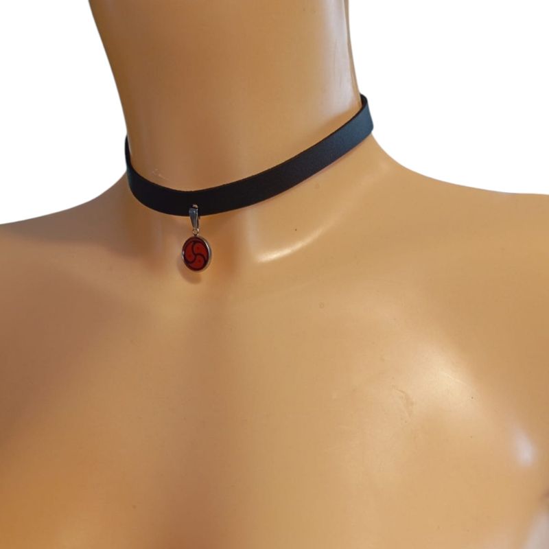 Pendentif : Triskel BDSM rouge et noir, symbole libertin