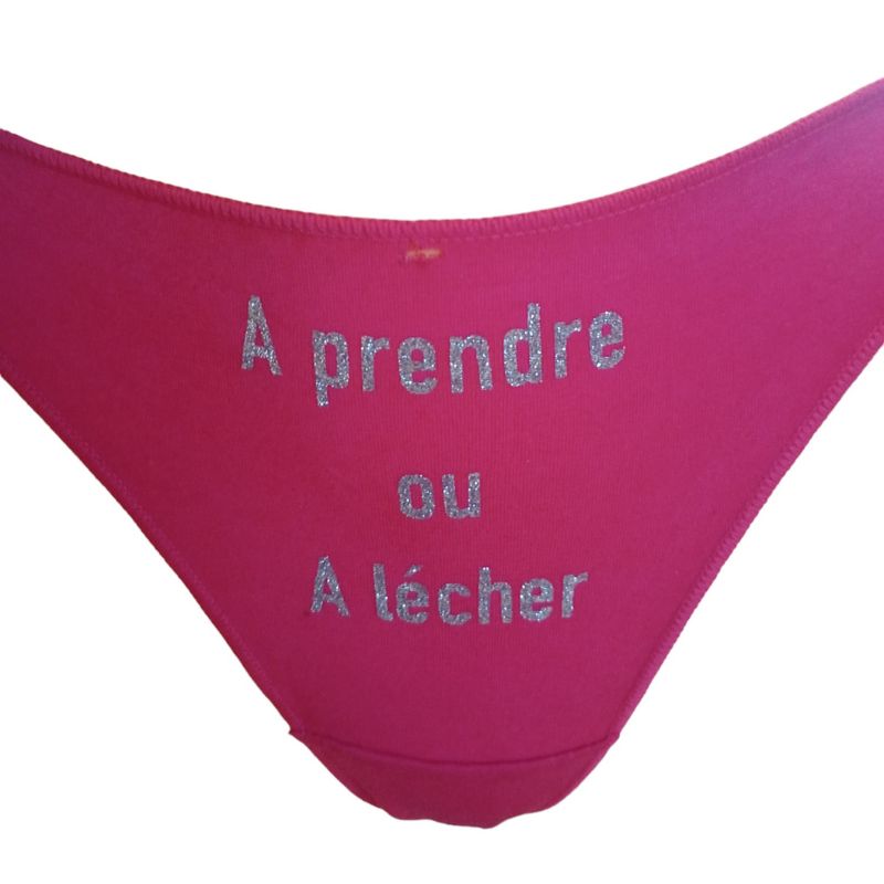 Affirmez vos désirs et surprenez votre partenaire avec ce string tanga ultra sexy, orné de l’inscription suggestive « À prendre ou à lécher ». Idéal pour les jeux de séduction, les soirées sexy ou tout simplement pour pimenter votre quotidien, ce dessous érotique allie provocation, confort et élégance.